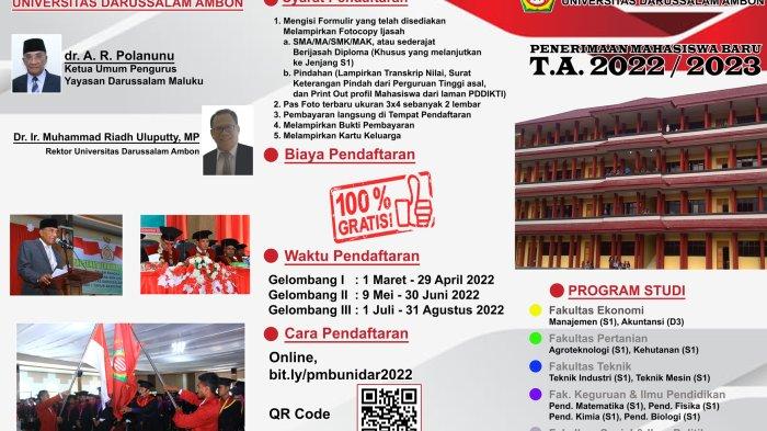 Jangan khawatir, karena Universitas Darussalam Ambon masih membuka pendaftaran mahasiswa baru gelombang III.